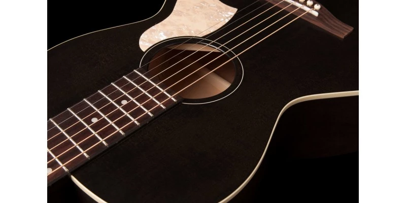 The Art & Lutherie Roadhouse Parlor Guitar in Faded Black includes Fishman Sonitone electronics.