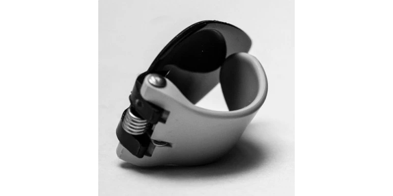 The Black Mountain Thumbpick is one of those products that, once you’ve tried it, you can’t believe didn’t exist before. This Medium gauge version combines a tapered 1mm nylon pick with beveled edges, and a tapered right-handed thumb ring. What’s more, this is the first in the world to utilise a spring. Joining the thumb ring and pick, the spring allows the pick to be flexible so it feels like a regular flat pick. Simultaneously, it clamps the thumb ring around the player’s thumb, creating a perfect balance between comfort and stability.