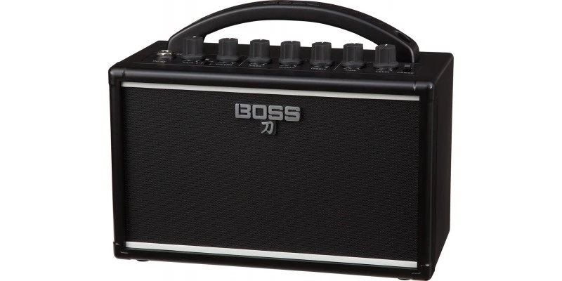 The Blackstar Fly 3 now has some competition in the sound quality department. With the introduction of the Boss Katrana Mini this amp doesn’t sound like a toy or a novelty item. BOSS have designed a custom speaker, advanced hardware, refined circuitry, and special component selection, which all work together to produce maximum sound quality in a minimum footprint. The amp also incorporates BOSS’s decades of research in energy efficient design, providing class-defying power and punch from only six AA-size batteries.