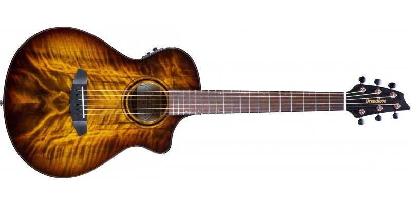 The Breedlove Pursuit Exotic S Companion Tiger’s Eye CE is now available from Merchant City Music, online and in our Glasgow store. We are a Breedlove main dealer, keeping a good range of these outstanding guitars in stock at all times. Every guitar we sell receives a full professional setup before it goes out the door. We deliver fast to the UK, Europe and worldwide.