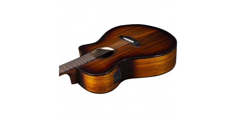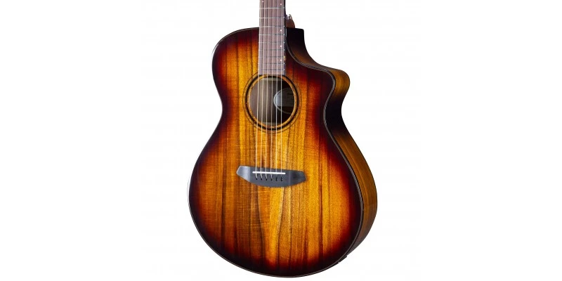 To pursue is to “endeavour to attain.” Something ‘exotic’ is at once glamorous and romantic, beguiling. Breedlove’s new Pursuit Exotic S Concert Edgeburst CE—featuring the earth-conscious, sonically superior EcoTonewood technology found in all ECO Collection instruments—is nothing if not beguiling and worthy of endeavour. Hawaiian koa offers a unique brilliance in both its rich sound and in the natural beauty of its tropical grain, which is highlighted here by a contemporary gloss edgeburst finish with tortoise binding. The pioneering soft cutaway Concert body shape is supremely versatile, with koa adding shine to fingerpicked passages and gentle muscle to firmer strumming. Scalloped bracing gives you a nuanced tonal palette typically found only on custom instruments.