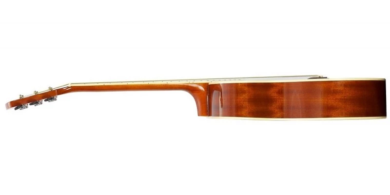 The Spruce top has been outlined with a black and white binding. The back and sides have been constructed from Sapele. Although the body of the Brunswick BF200 SB Tobacco Sunburst is a little bit smaller it still has some depth to it. This means that it retains plenty of punch. It is an acoustic guitar with plenty of clarity. The bronze-wound steel strings give it plenty of zing.