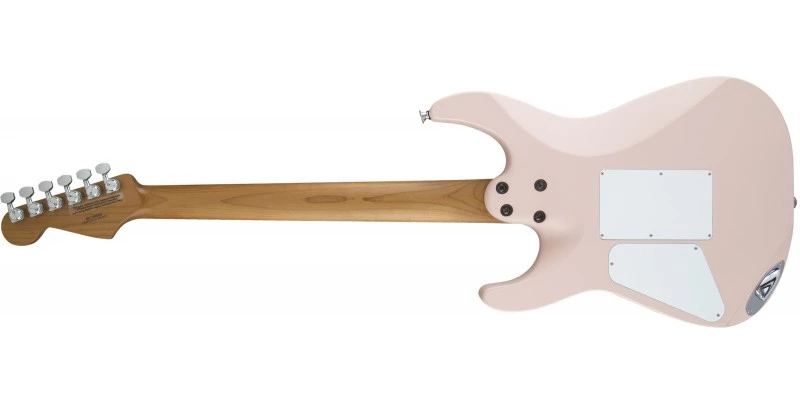 The Charvel Pro Mod DK24 Dinky is here presented in satin Shell Pink, and features a two-part Caramelised (or Roasted) maple neck. The Pro Mod DK24 is a shredder’s dream, fitted with a custom Seymour Duncan® Full Shred SH-10B in the bridge, complemented by two Seymour Duncan® Custom Flat Strat SSL-6 RWRP Single Coils. The neck is called Speed, and not without reason. Rolled fretboard edges further ensure progress across the ‘board is entirely unhindered. Roasted maple means it feels silky smooth. The Gotoh® Custom 510 Tremolo Bridge facilitates all the tricks, while locking machines at the other end keep your tuning in check.