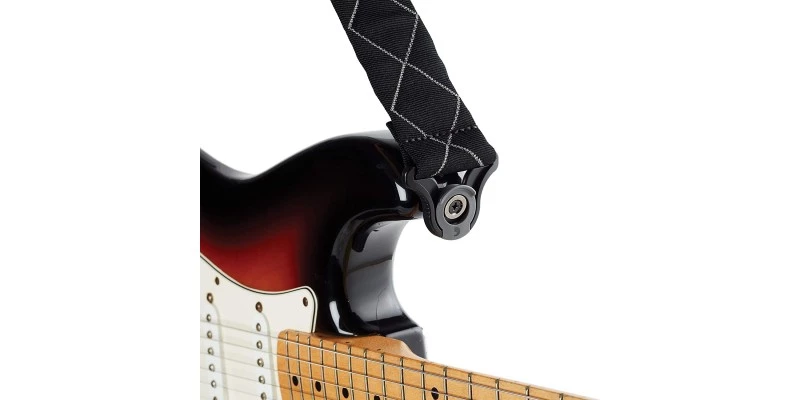 The D’Addario Auto Lock Guitar Strap in Black Padded Diamonds is an ingenious strap with an integrated locking mechanism, giving the benefits of separate strap locks, without the hassle. Now available from Merchant City Music, online and in our Glasgow store. We are Glasgow’s longest-established guitar specialist, shipping fast to the UK, Europe and Worldwide.
