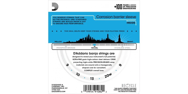D’Addario banjo strings are trusted by legends like Ralph Stanley, Rob McCoury, Ron Block, Alison Brown, and more, for their authentic tone and reliable performance. They are made from the highest quality plain steel, stainless steel, nickel plated steel and phosphor bronze and available in a wide variety of gauges.