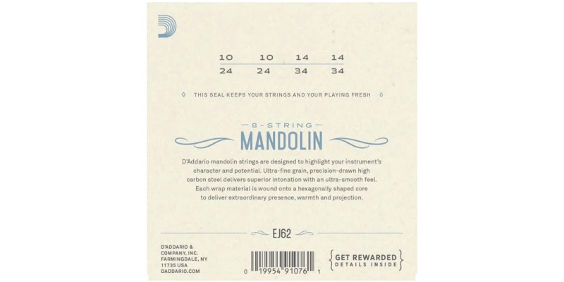 The D’Addario EJ62 Mandolin Strings are Bronze Light Gauge.