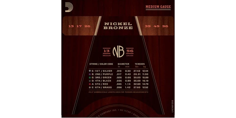 The Medium D’Addario NB1356 Nickel Bronze Wound Strings have brilliant clarity, resonance and projection.