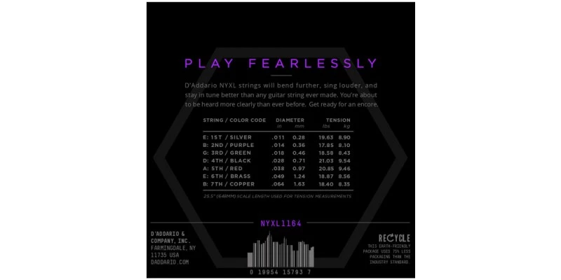 THE D’ADDARIO NYXL1164 7 STRING SET OF GUITAR STRINGS LET YOU BEND FURTHER AND SOUND EVEN BETTER.