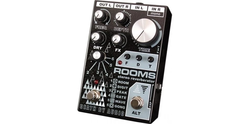 The Death By Audio ROOMS is a stereo, multi-function digital reverb capable of searing volume, gated walls of sound, and long, trailing reverberant ambiances with an intuitive array of controls designed with live mood-bending in mind.