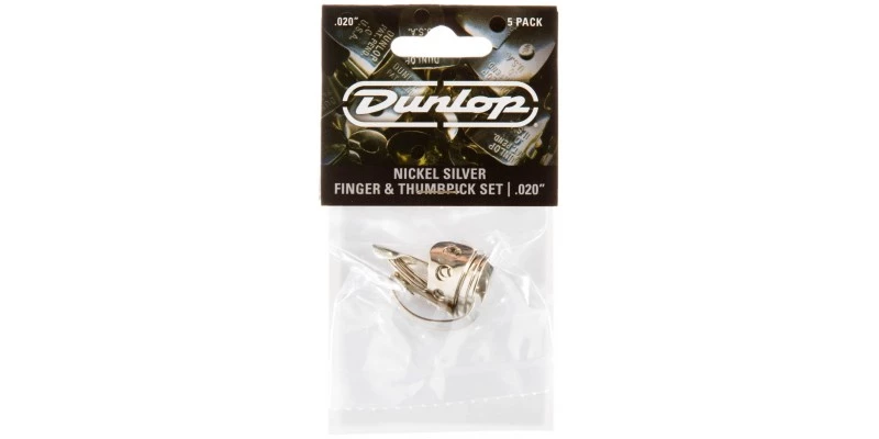 Pack of five finger and thumbpicks by Dunlop in nickel silver. These picks will deliver a bright and classic sound on banjo, pedal steel, resonator or acoustic guitar.