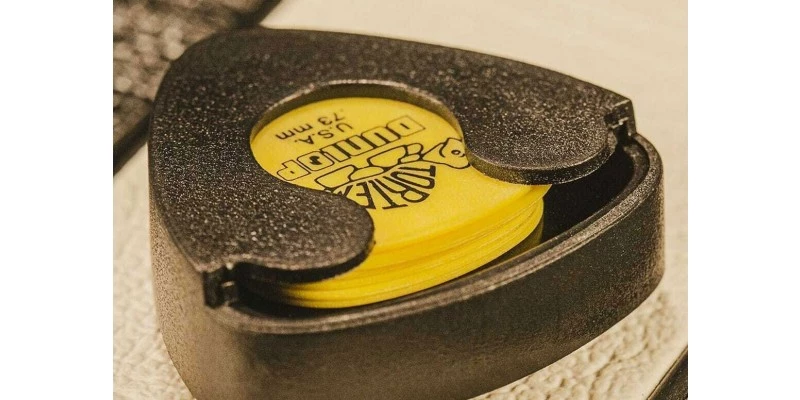 Drop your pick on stage? No problem when you have the Jim Dunlop Pickholder. This spring-loaded, sleek black pick holder keeps picks close at hand. Guitar plectrums have a nasty habit of going missing. With the the Jim Dunlop Pickholder you can keep an assortment of plectrums safely to use as and when required.