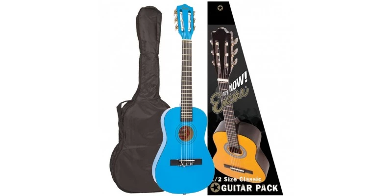 The Encore 1/2 Size Classical Guitar Pack is here presented in a Metallic Blue finish. It comes with all the accessories needed to get started playing guitar, from a carry bag to a spare set of strings. 1/2 size is perfect for younger children.
