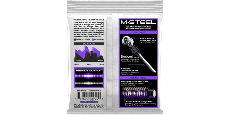 It’s not just strength that Ernie Ball M-Steel Power Slinky strings provide. You get increased output and harmonics that jump out of the speakers. Ernie Ball M-Steel strings are crisp and bright with a well defined low end response. They’re more expressive and fuller sounding than conventional guitar strings.