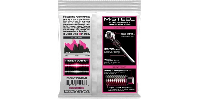 It’s not just strength that Ernie Ball M-Steel Super Slinky strings provide. You get increased output and harmonics that jump out of the speakers. Ernie Ball M-Steel strings are crisp and bright with a well defined low end response. They’re more expressive and fuller sounding than conventional guitar strings.