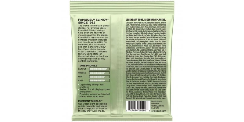 Ernie Ball Slinky Nickel Wound Electric Guitar Strings are made from nickel plated steel wire wrapped around tin plated hex shaped steel core wire. The plain strings are made of specially tempered tin plated high carbon steel producing a well balanced tone for your guitar. Gauges .012, .016, .022w, .032, .044, .056