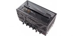 Boasting exceptional construction, fierce tone and distinctive style, the wildly fun LBX-S Head features a black front panel and black metal grill cage with the Stealth EVH-striped motif. Unique to the LBX-S, this head also has internal LED backlighting that illuminates the cage in either green or red to match the selected channel. And just like all Stealth models, the LBX-S has been modded to include an adjustable bias control port.