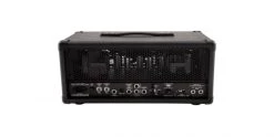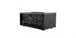 Seductively dark in black textured vinyl with a dual black EVH striped steel grille front panel, this 50-watt stealth head also comes with vintage-style “chicken head” black control knobs, red lamp jewel, dual speaker output jacks, four-button footswitch, effects loop, direct out and moulded plastic handle.