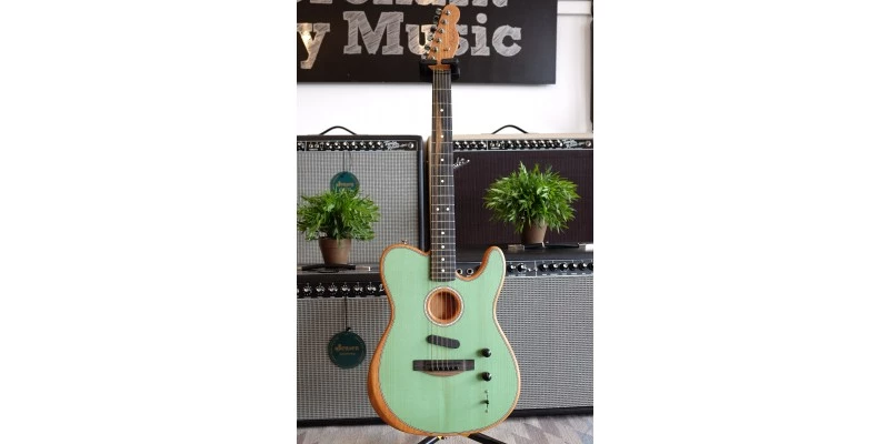 The Fender Fender American Acoustasonic Telecaster is here presented in a Surf Green finish with Natural back and arm contour. Outputting a range of tones which transcends the electric guitar norm, the Acoustasonic Telecaster is packed with no less than three pickup systems. A hollow Mahogany body provides outstanding resonance, even allowing it to be played unplugged. The overall result is a very impressive guitar with appeal for experimentalists and traditionalists alike.