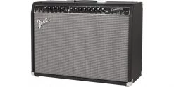 The Fender Champion 100 is a 100 watt electric guitar amplifier combo with two 12 inch speakers and loaded with features. Having 100 watts and a 2×12 inch configuration means this amp is loud, and definitely loud enough for gigging or rehearsal situations. It’s two foot switchable channels allow you to dial in two completely different sounds and flick between them with the included footswitch. Channel One of the Champion 100 delivers a classic Fender clean tone based on amps like the Twin Reverb, and Channel Two has selectable amp voicing ranging from blues to metal and more. There are a diverse palette of effects for each channel including delay time and tremolo Speed that can easily be set with the TAP button to match the songs tempo. Also included are an auxiliary input for jamming with a media player and a headphone output for silent practice. The Champion has a powerful 100 watt output which is usually more than enough for any stage and classic Fender Blackface cosmetics.