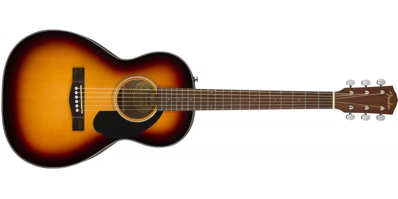 The Sunburst Fender CP-60S features a smaller parlour body and a solid spruce top.