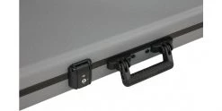 The Fender Deluxe Moulded Case Stratocaster / Telecaster is here presented in a special Silver finish with Blue plush lining. One of Fender’s most popular cases, this colour scheme has been released in celebration of Fender’s 75th anniversary.