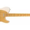 The ’50s Telecaster is equipped with a resonant basswood body and dual single-coil pickups voiced to replicate classic Tele tone. A 4-way switch allows players to quickly select each pickup individually or both pickups in either series or parallel wiring. A push-pull pot on the tone control allows players to flip the pickups in and out of phase in switch positions 2 and 4. The Soft “V”-shaped maple neck has a silky-smooth satin finish and plays effortlessly thanks to the 9.5″ radius rosewood fingerboard and medium jumbo frets.