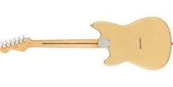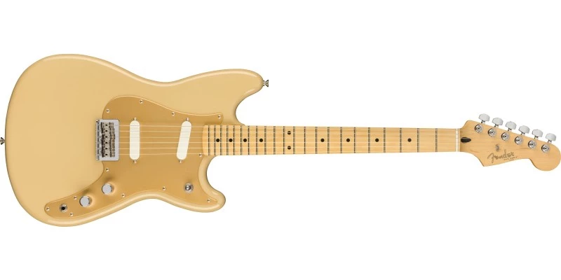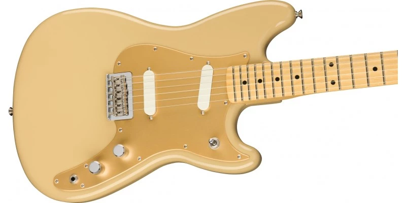 The downsized body is comfortable for smaller players or those who enjoy energetic stage performances. A gloss polyester finish protects the body while the neck bears a satin polyurethane finish for fast, easy playability. Aesthetic appointments, including the knurled flat-top control knobs, cast/sealed tuning machines and a 1-Ply Gold Anodised Aluminium pickguard, add a touch of classic Fender style to this updated design. The unsung hero of the alternative underground, the Duo-Sonic is perfect for players who desire a unique sound and visual style.