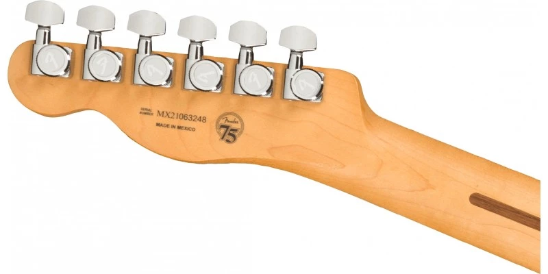 In terms of playing feel, the silky satin Modern “C” Player Plus Tele neck fits your hand like a glove, while smooth rolled edges result in supreme playing comfort. The 12” radius fingerboard and 22 medium jumbo frets facilitate fluid leads and choke free bends. A modern 6-saddle Tele bridge with block steel saddles adds a touch of brightness while providing precise intonation. Finally, locking tuners provide rock-solid tuning and make string changes quick and easy.