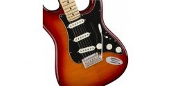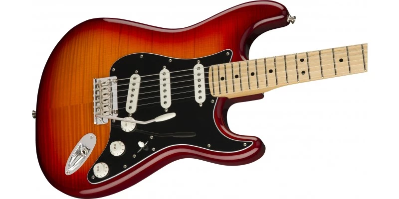 The Fender Player Stratocaster Plus Top in Aged Cherry Burst with Maple fretboard is part of Fender’s Player Series of Electric Guitars. This series has been designed to replace the Standard Series of instruments, and features multiple upgrades to make the Player series even more authentically Fender, and even better to play as a guitar. The Plus Top variant features a flamed maple top to the body for a premium look.
