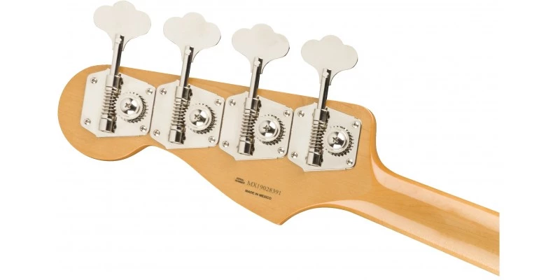 For authentic, original-era tone we re-voiced the pair of single-coil Jazz Bass pickups to sound more like the originals. Gritty and growling, they have the tone that made the J Bass popular. The “Mid ’60s C”-shaped neck has a 7.25”-radius fingerboard with 20 vintage-style frets for classic playing feel. A vintage-style, 4-saddle bridge with threaded saddles and reverse, open-gear tuning machines provide original-era aesthetics, rock-solid performance and tuning stability. Other features include 34” scale length, chrome hardware and 4-bolt neck plate. Includes a deluxe gig bag.