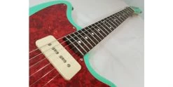 The Fret-King Atelier Ventura 60 in California Green has been hand-built under Trevor Wilkinson’s personal supervision, in the UK Fret-King workshops to painstaking, faultless standards of perfection. The Ventura 60 features a calibrated set of Fret-King Alnico V P90-style pickups, with a medium-output neck pickup and a hot bridge pickup to give a balanced response, chiming with the ‘characteristic of era’.