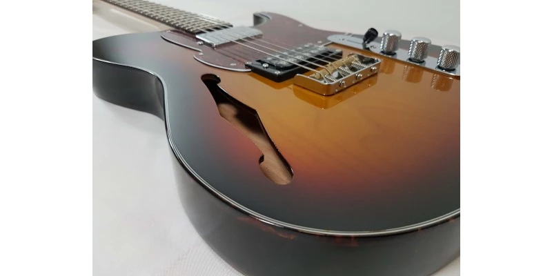 The gently offset body, with sculpted heel and slim horn, provides terrific balance and enhanced upper fret access. The extended tenon neck/body join ensures stability, and couples outstandingly well to the chambered semi-acoustic body, adding an airy lightness to the feel and voice of this great guitar, and enhancing familiar tone with an acoustic quality which only makes the whole superbly versatile.
