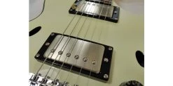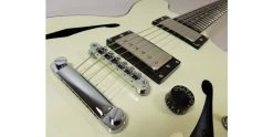 The Fret-King Elise in Vintage White is from the Black Label Range of instruments and is a brand new colour for 2016. The Fret-King Elise comes shipped in a luxury gig bag and will be setup to perfection by ourselves. Like all Fret-King guitars, the Elise has top quality features such as Wilkinson hardware and pickups. 2 classic humbuckers wired to the Vari-coil control allows you to access chiming single coil tones from this semi-hollow electric guitar. Available to buy online for super fast delivery across the UK and Ireland. We also ship worldwide at very competitive rates.