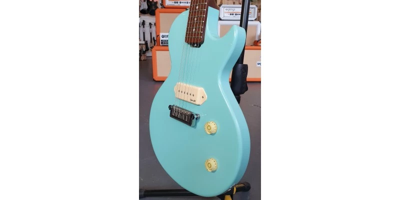 The Gordon Smith GS1-60 Sea Foam Green comes with its own great quality hardware. There is one Gordon Smith Dog Ear P-100 stacked humbucker pickup in the bridge position. Volume and Tone controls are included, with a switch in the volume control giving access to hotter and milder pickup outputs. At its core, the pickup is capable of big outputs, and sounds massive through a good valve amp.