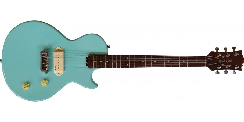 This Gordon Smith GS1-60 Dog Ear P100 is an electric guitar with a thin Poplar body. Presented in a beautiful pastel Sea Foam Green, and made in England, its singlecut body has been fitted with a single Dog Ear P100 stacked pickup. Also included in the price is a quality Gordon Smith Gig Bag and cream pickguard which can be fitted if preferred. For sale online at Guitar.co.uk and in our Glasgow shop, Merchant City Music. We offer fast UK, European and worldwide delivery. Every guitar we sell is subjected to a full check over and professional set up, ensuring it plays its best when it arrives with you.