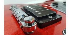 The Gordon Smith GS1 Heritage in Cherry features a Homewound Humbucker Pickup. Wound in-house they have been a feature of Gordon Smith guitars for decades, offering rich crunch, chiming cleans to soaring lead sounds, and these have also been improved with even better quality components and magnet materials. The GS1 Heritage features simple but effective electronics, with a single volume control which doubles as a Push Pull coil tap, and a tone control for taming the highs, and mellowing the tone. The GS1 Heritage is finished in classic Cherry stain, with gloss top and gloss black headstock. The back and sides of the guitar along with the neck are finished with a satin Cherry stain, for a slick and silky smooth playing feel. The wraparound bridge bar features adjustable screws, which makes tweaking the intonation easy.