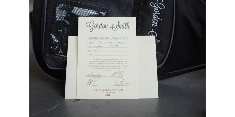 This guitar also comes complete in a Padded Gordon Smith Gig Bag, with full certification.