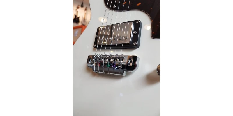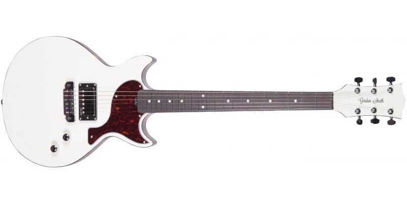 The Gordon Smith GS1000 in Vintage White features a Homewound GS Humbucker Pickup. Wound in-house they have been a feature of Gordon Smith guitars for decades, offering rich crunch, chiming cleans to soaring lead sounds, and these have also been improved with even better quality components and magnet materials. The GS1000 Heritage features simple but effective electronics, with a single volume control which doubles as a Push Pull coil tap, and a tone control for taming the highs, and mellowing the tone. This Gordon Smith GS1000 is finished with a Gloss Vintage White top and tortoiseshell pickguard. The back and sides of the guitar along with the neck are left Natural with a satin lacquer for a slick and silky smooth playing feel. The fully adjustable Gotoh 510 bridge features a wrap around design with individual saddle adjustment for spot on intonation.