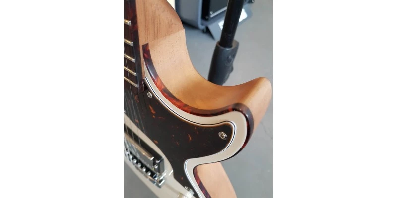 With a thick, double cutaway solid body, made of Brazilian Cedar, this guitar has a satisfying weight and balance, and great resonance. The neck, just as the body, is hand carved for immediate comfort, and features a Chunky profile. This should feel great for those looking for a medium profile, not thick, but not too slim and flat either. The Rosewood fingerboard is inlaid with dot markers, and the fretwork is simply superb, with a smooth polished feel when performing bends. The body, neck and headstock have full cream binding which adds a touch of class to the overall aesthetic. A unique feature for Gordon Smith Guitars is they feature Hand Cut Brass Nut’s. The are not only tough, but offer great tonal benefits, increasing brightness and sustain. The new truss wheel adjustment at the base of the neck is a great modern upgrade that works flawlessly.