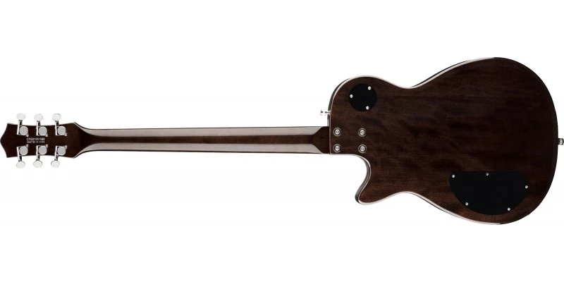 An elongated 29 ¾”-scale accommodates lower tunings without loss of string tension, while the sturdy bolt-on maple neck is topped with a comfortable 12” radius laurel fingerboard featuring 22 medium jumbo frets. Other premium features and appointments include an anchored Adjusto-Matic™ bridge, V-Stoptail, pearloid big block inlays, white binding with purfling and chrome hardware.