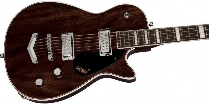 Crafted with unmistakable Gretsch sound, style and playability, the G5260 Electromatic Jet Baritone with V-Stoptail comes in a Imperial Stain finish with black pickguard.