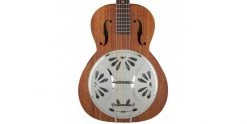 The remarkable Gretsch Ampli-Sonic resonator guitars add powerfully distinctive tone to the Roots Collection. The mahogany-body Boxcar Standard and comes in round-neck and square-neck models. This is the round neck model.