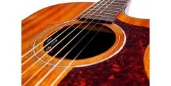 The Guild D-120CE Westerly comes with Fishman electronics. It includes a Sonitone preamp system hooked up to a Fishman Sonicore pickup. The Sonitone includes a volume and tone control. An endpin jack has been fitted. It is a natural and balanced sounding system.