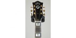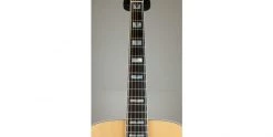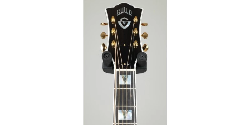 The D55 showcases Guild’s most recognisable headstock which is fully bound and features the Guild “Peak and Shield” inlay combination over a figured ebony overlay. The matching ebony fingerboard is also fully bound and inlayed with Guild’s iconic abalone/pearl “V-Blocks” and multi-line “railroad track” purfling on the bass and treble sides. The D-55’s fingerboard is set on an all-mahogany neck with beautiful walnut center seam running the length of the heel to headstock. The D-55’s nitro finish is hand sprayed for minimum thickness and maximum resonance that will only get better with age.