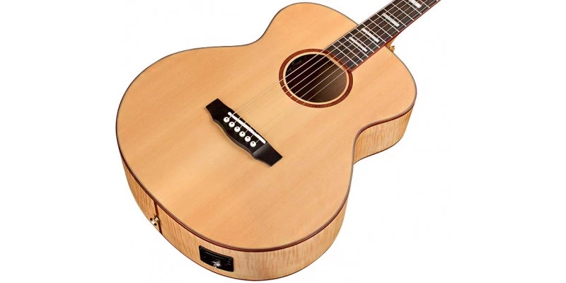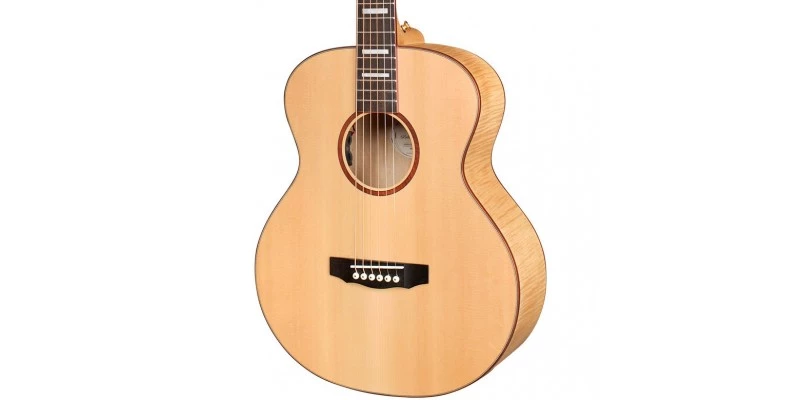 The Guild Jumbo Junior Reserve Maple is an upgraded version of Guild’s superb mini-jumbo model, coming with Flamed Maple back and sides, exotic Padauk binding and rosette, and Gold hardware. This really is a do-it-all guitar, equally capable as a compact sitting room guitar, or on stage, filling an arena with its built-in Fishman electronics. We’re big fans of Guild’s Arched Back construction. This unique feature imbues Guild acoustic guitars with uncanny volume and noticeably lighter weight.