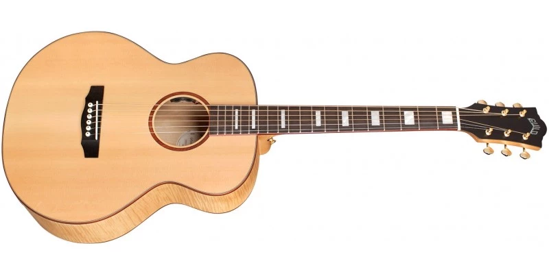 Featuring a solid Sitka spruce top and arched Flamed maple back & sides, the Jumbo Junior offers Guild’s classic aesthetic for those who love the look of a jumbo, but may not love the size. The 23 3/4“ scale length gives this guitar portable size, but the playability of full sized instrument. Top it off with Fishman GT-1 electronics to plug in to an amp, and the Jumbo Junior is ready to go whenever you need to get your Guild on.