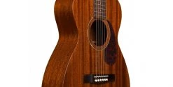 The Guild M-120 is a small-bodied, all-solid Mahogany acoustic guitar from the Westerly Collection. One Guild’s most popular body shapes, the M is the perfect guitar for smaller players or for intimate sessions at home. All-solid mahogany construction ensures rich, premium tone, while the gloss finish and open-back tuners embue the guitar with a vintage, upmarket aesthetic.