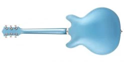 Guild’s most iconic electric guitar is now available to a whole new range of players. Expanding on the double cut body shape made famous by the Guild Starfire, the Starfire I DC features semi-hollow body construction utilizing a mahogany center block for reduced feedback and clear sustain. Retaining the airy, crisp tone you would expect from a semi-hollow body, the Pelham Blue model features an elegantly arched maple top, back, and sides.