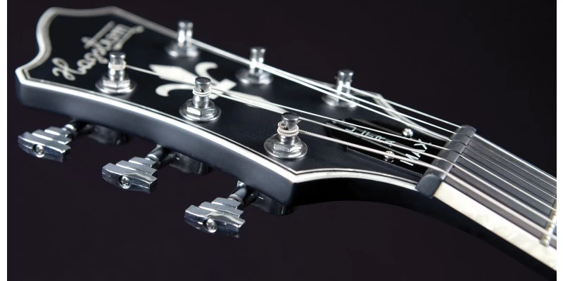 The Ultra Max shares the same small body concept of the Ultra Swede, yet with a slightly larger proportioned mahogany body topped with a thick custom carved flame maple top. The body joins to a mahogany set neck utilising a mortise and tenon neck joint with a 25.50” scale length, which naturally features Hagstrom’s H-Expander™ truss-rod and Resinator™ fingerboard. Its sleek and “ultra-comfortable fast neck” is paralleled with Custom 60 Alnico-5 pickups with their eloquent Aluminium Brushed covers, delivering the cutting voice that this instrument demands.