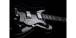 This semi acoustic bass guitar has classic styling. It comes with some very modern touches though. Playability wise the maple set neck is slim and very comfortable. The Hagstrom Viking Bass in Black includes an H-Expander Truss Rod. This adds stability to the neck. Important given its slender proportions. Resinator wood is a composite used for the fretboard. It delivers tones similar to that of ebony. It is more consistent though. Housed in the semi hollow contoured ply maple body are two Dyna Rail pickups. These are controlled using a Rotary switch and volume and tone knobs. A huge range of tones can be got with this combination.